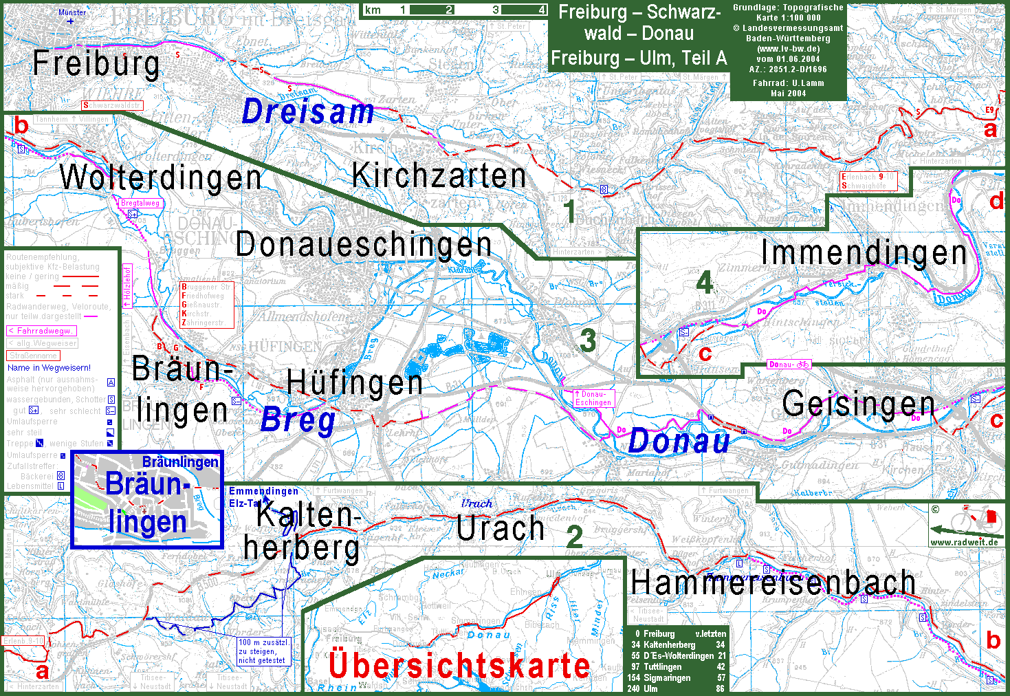 Auf dem Fahrrad von Freiburg im Breisgau direkt an die Donau und dieser folgend nach Ulm: